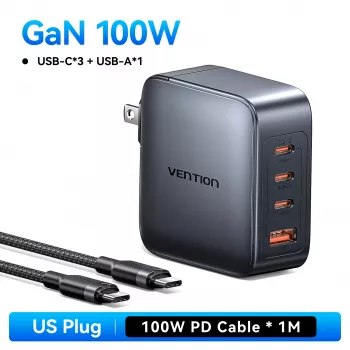 100W GaN Fast Charger with 4 Ports for Laptop, Phone & Tablet