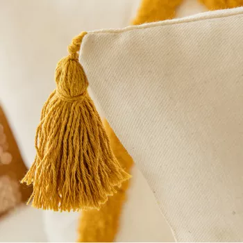 Boho Golden Sun Velvet Throw Pillowcase – Geometric Fringe Cushion Cover
