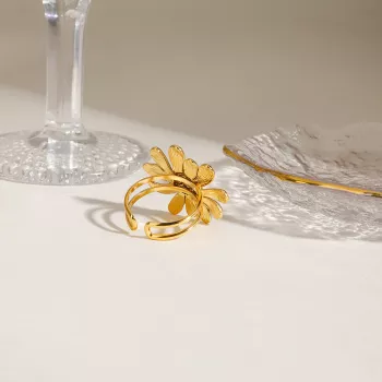 Classic Sunflower Cocktail Ring 18K Gold Plated Stainless Steel Waterproof