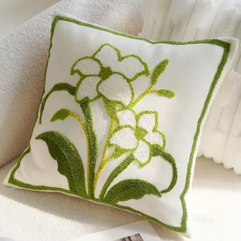 Nordic Lily Embroidered 18x18 Inch Flannel Decorative Throw Pillow Cover
