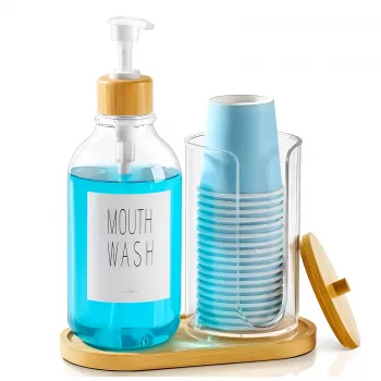 Refillable Mouthwash Dispenser with Pump and Cup Holder, 17oz Bathroom Set